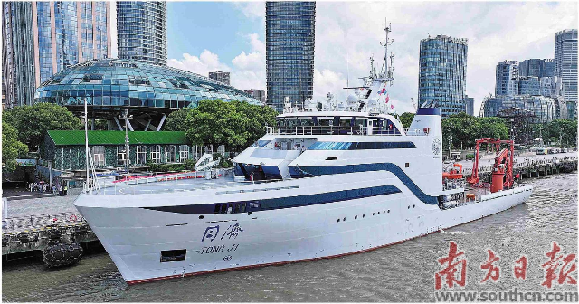 据悉,“同济”号是继“梦想”号、“探索三号”后在南沙建成的又一艘新型科考船。目前,南沙已基本形成以龙穴造船基地为主要承载区的船海产业集群,产能超550万载重吨,单船造船能力突破30万吨。
