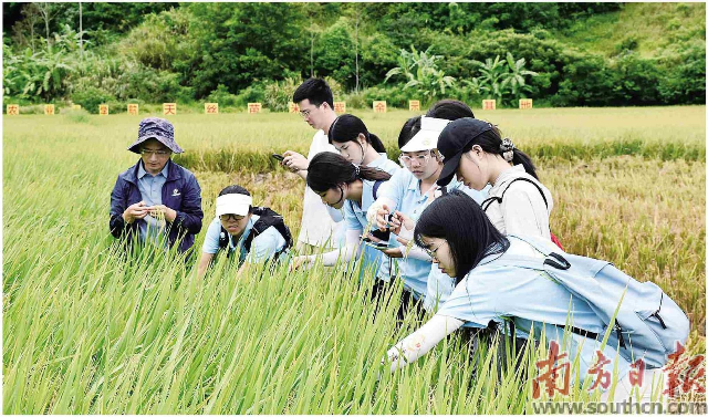 华南农业大学“金穗麦浪”突击队推广高科技航天稻种。广东共青团供图