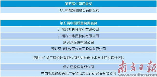 从获奖数量看,在第五届中国质量奖和提名奖名单中,广东获奖总数达8家,较第四届增加了3家,占全国授奖总数的8.5%。