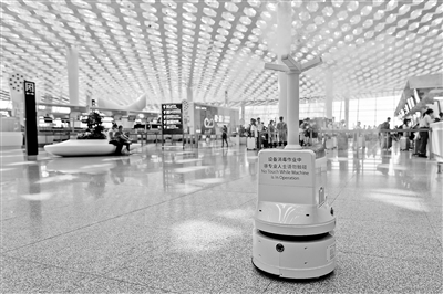 深圳宝安国际机场内,消毒机器人正在作业。