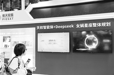 第十个“中国航天日”科普展上,观众观看“天权智能体+DeepSeek”展台。视觉中国供图