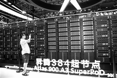 2025世界人工智能大会暨人工智能全球治理高级别会议上展示的华为昇腾384超节点。视觉中国供图