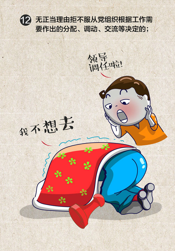 (十二)无正当理由拒不服从党组织根据工作需要作出的分配、调动、交流等决定的;